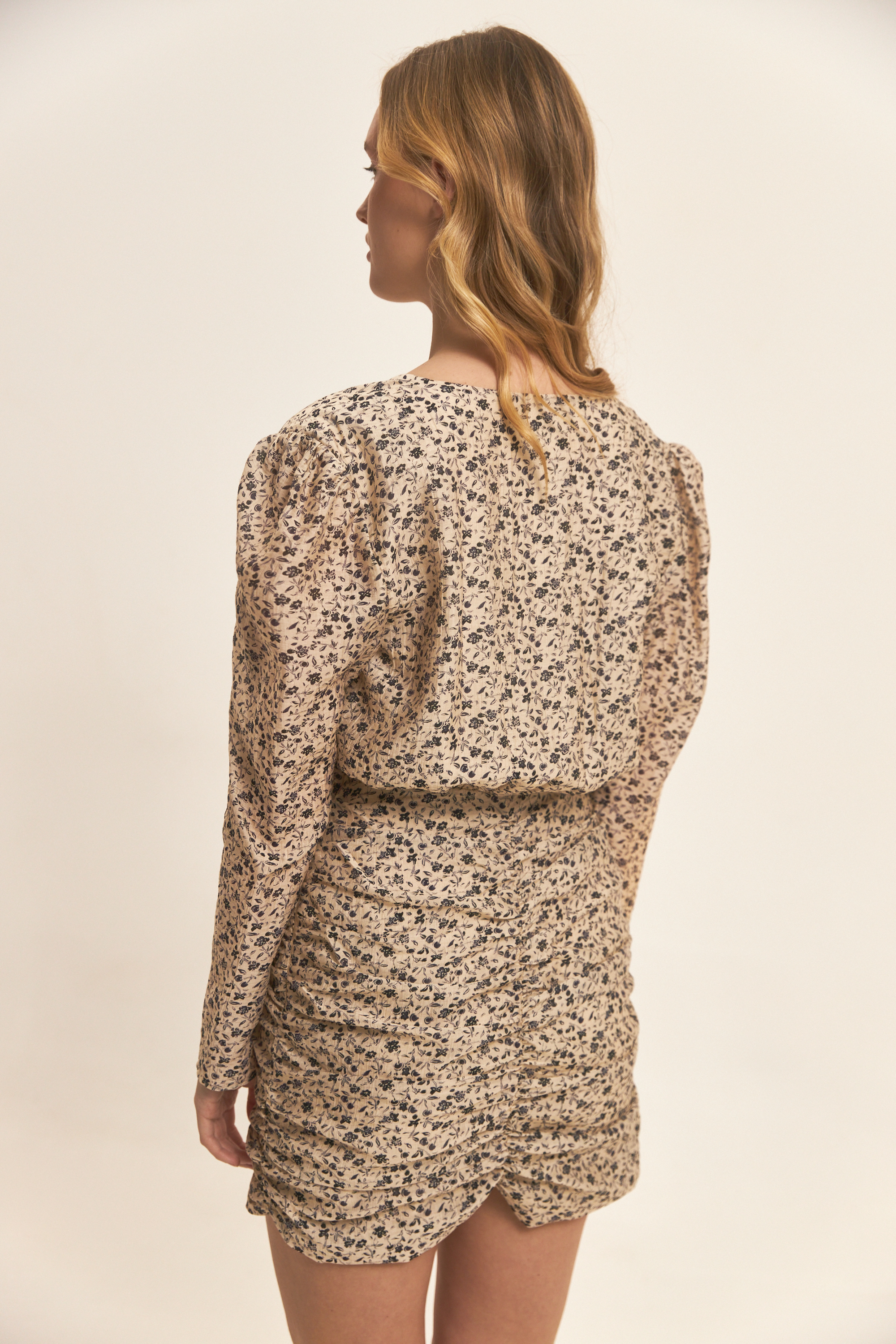 Крупные цветы на тёмном фоне обычно смотрятся очень эффектно. Если вы хотите визуально сделать силуэт стройнее, обратите внимание на платья с мелким принтом или однотонные тёмные модели.